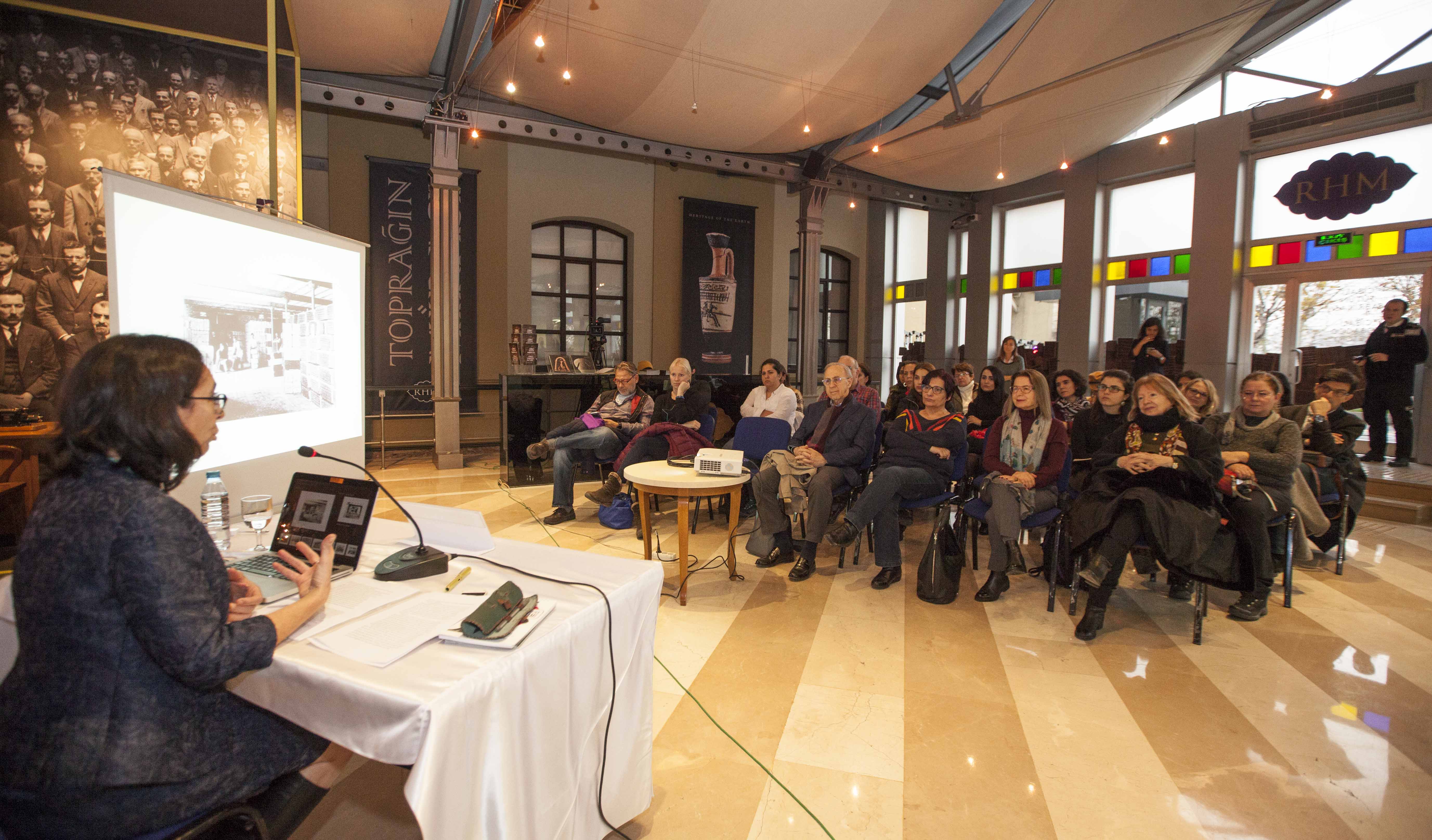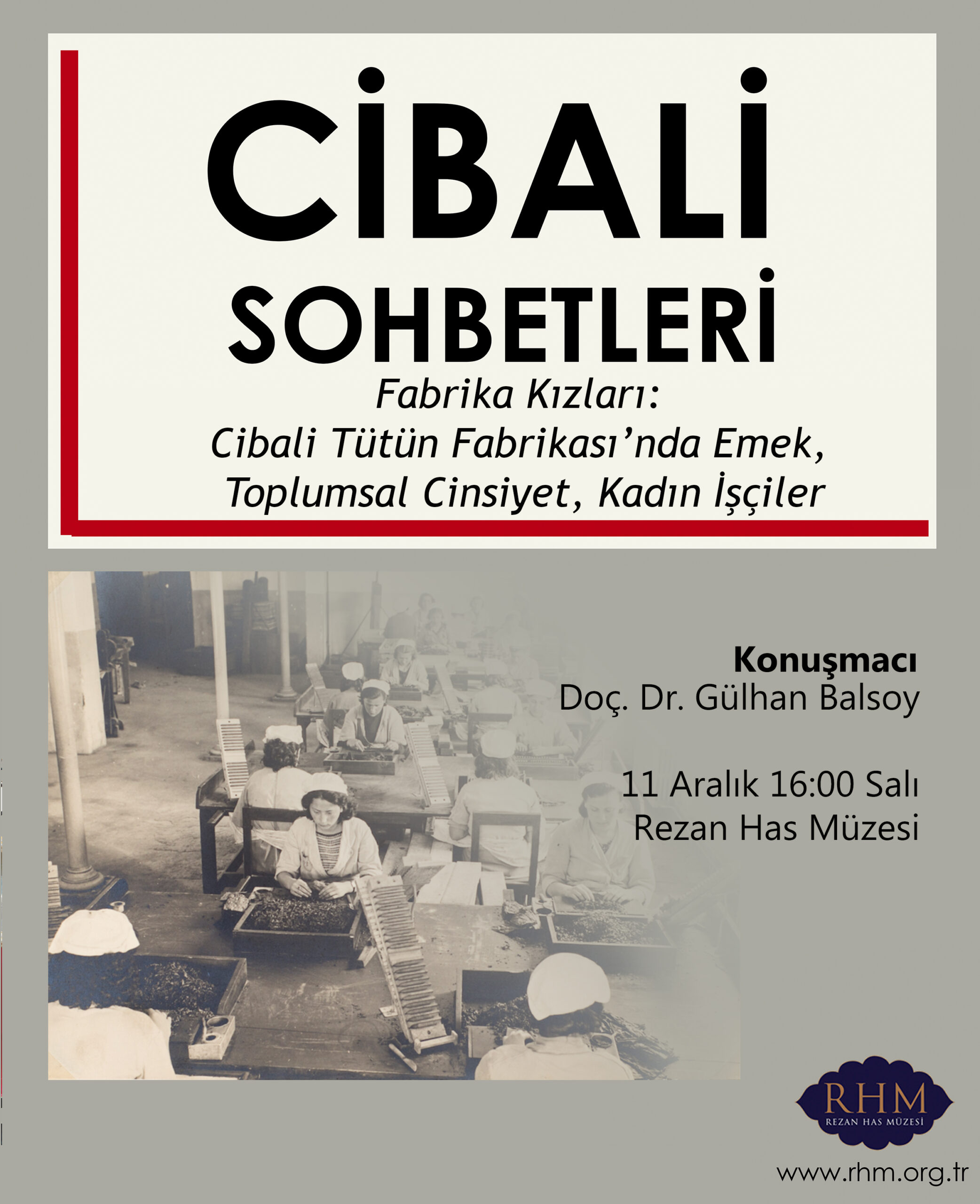 ‘Cibali Sohbetleri’ panel serisinin üçüncü oturumu İstanbul Bilgi Üniversitesi’nden Doç.Dr. Gülhan Balsoy tarafından Fabrika Kızları: Cibali Tütün Fabrikasında Emek, Toplumsal Cinsiyet, Kadın İşçiler başlığı ile gerçekleştirildi. Dr. Balsoy konuşmasında 1884’te kurulan Cibali Reji Fabrikasında üretim sürecini ve özellikle kadın işçilerin rolünü, Guillaume Berggren’in fabrikada çektiği fotoğraflar ve arşiv belgeleri üzerinden değerlendirdi.
